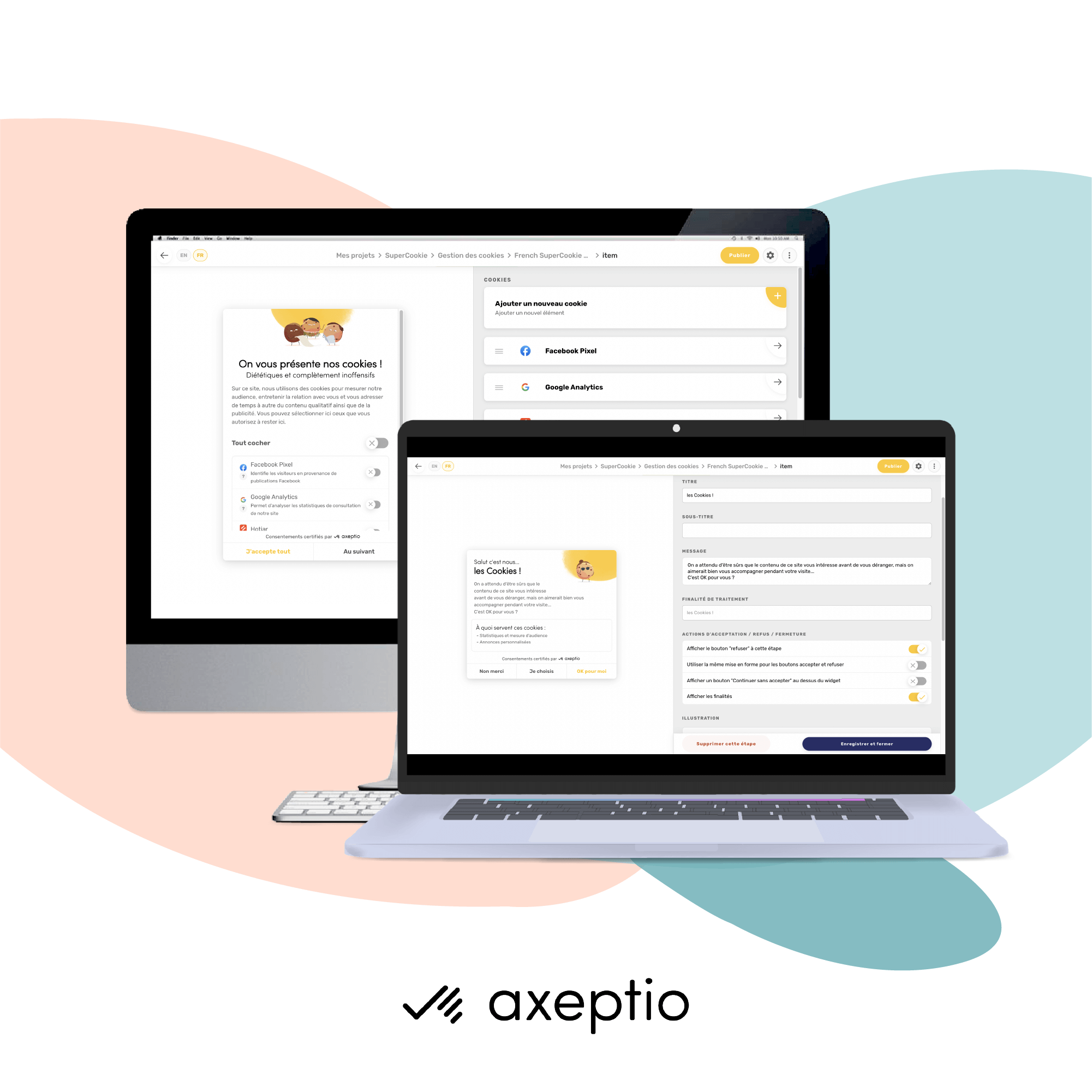 Configuration happens in the WordPress admin part where you can input your client ID and link your website to your Axeptio account
