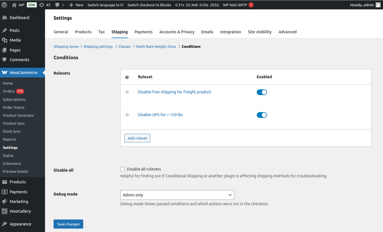 - Added “Disable all” setting for disabling all rulesets at once (WooCommerce > Settings > Shipping > Conditions > Disable all)